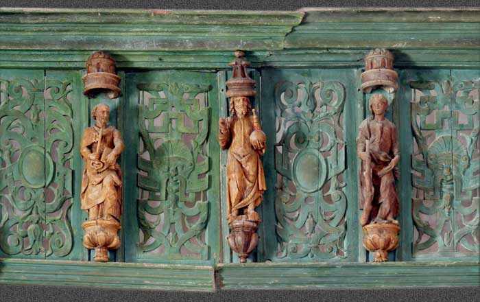 Partie centrale : le Christ encadré par Pierre et Jacques le Mineur