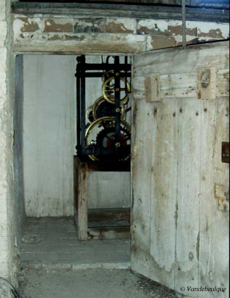 Le réduit où est logé le mécanisme de l'horloge.