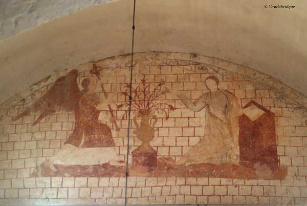 Peintures murales de la chapelle du transept sud : l'Annonciation.