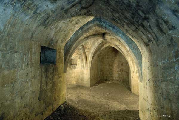 Un tronçon de galerie (environ 1,8 mètre de large et 2,15 mètres sous clé). On aperçoit deux des cinq niches dont l'usage n'est pas avéré.