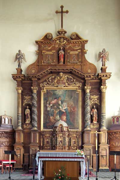 Le retable avec ses 5 statues, le tableau central , l'autel et le tabernacle