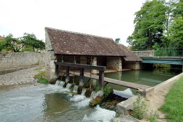 à godets et à manivelle, qui dépasse de l'extrémité du toit.