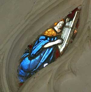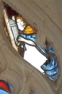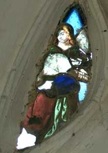Instruments de musique et un curieux ange rouge.