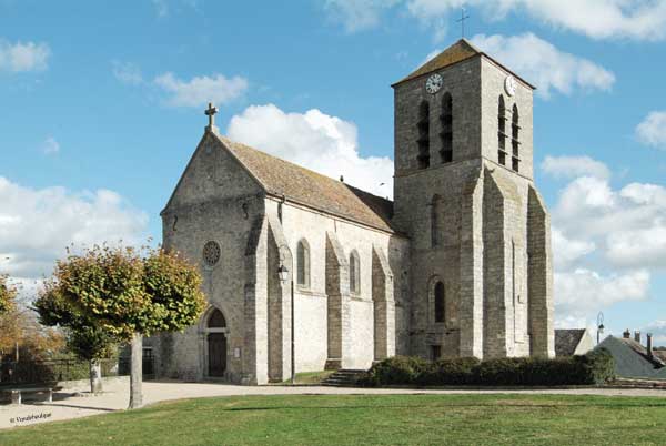 L'église Saint-Rémi avec son clocher-tour flanqué d'une tourelle qui fait office de contrefort.