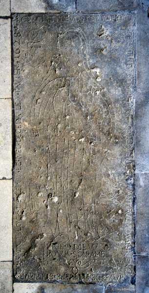 ci gist desvote et religieuse personne dom jehan robineau en son vivant aumosnier en l'abbaye de ferriere et prieur de saint loup de cepoy lequel deceda le X janvier 1628 pries dieu pour son ame