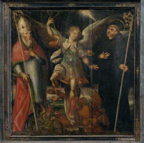 Saint Michel entre saint Benoit et un abbé Peinture sur bois (XVIIe siècle)