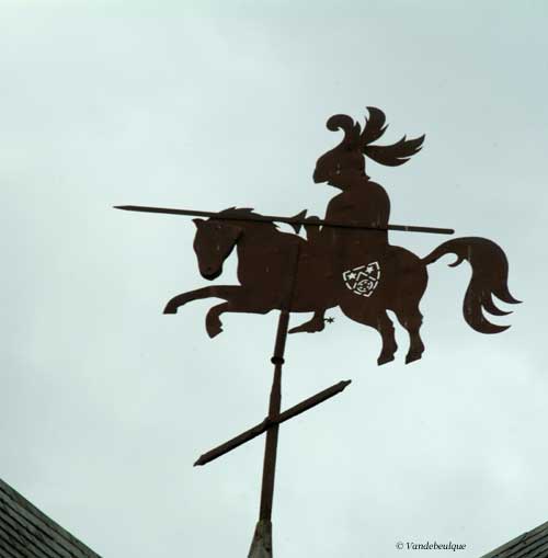 Girouette à l'effigie de saint Georges en chevalier avec un écusson aux armes des Le Charron