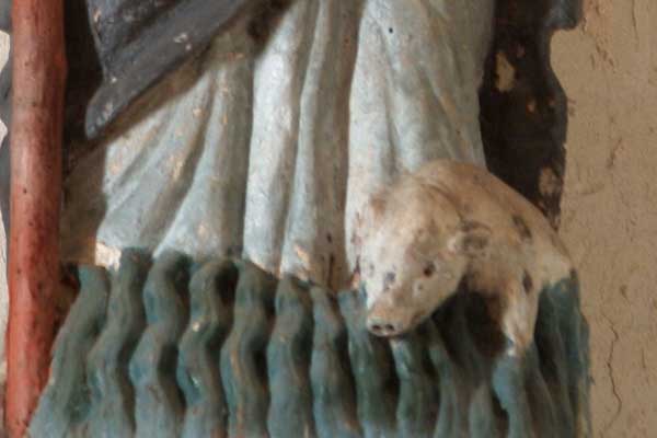 Le cochon de saint Antoine dans les flammes du feu sacré.