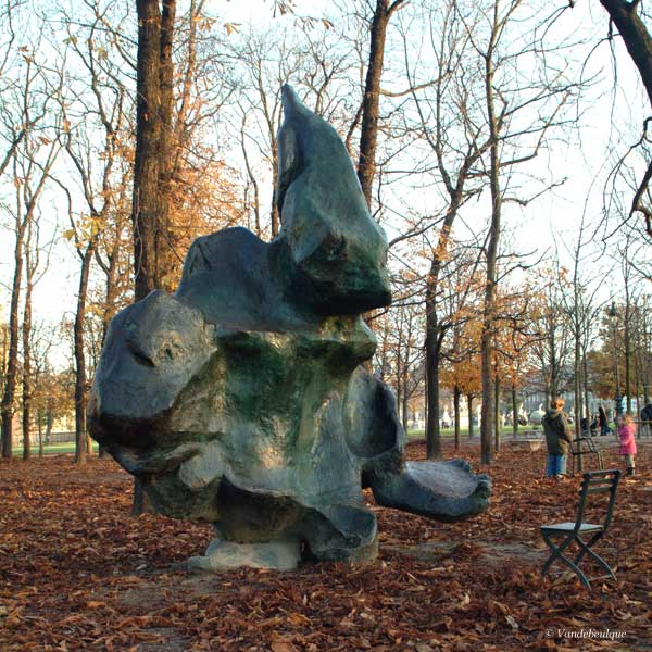 "L'Ami de personne", au Jardin des Tuileries à Paris. (La chaise, en bronze, fait partie de l'oeuvre)