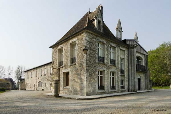 L'abbaye de Cercanceaux : le bâtiment principal, sur la façade duquel subsistent des colonnes de l'ancienne église Sainte-Marie