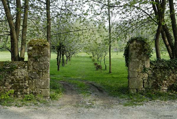 L'abbaye de Cercanceaux : l'entrée de la partie "jardin" du monastère, totalement clos de murs et décaissé par rapport à l'environnement, pour maintenir la fraîcheur et abriter du vent.