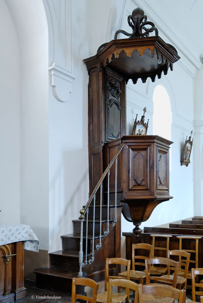 la chaire à prêcher avec rampe en fer forgé et bois.