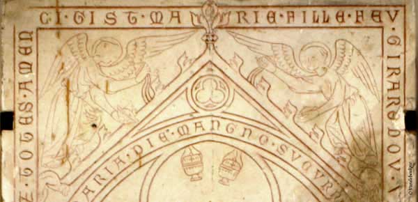 Deux anges encensent la défunte au travers du toit de la chapelle funéraire