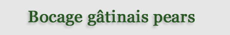 Angletterre, Bergamotte Esperen, Bon chrétien, Catillat, Besi de Chaumontel, poire de curé, Livarniot, Normand, Poire de fer, Poire des Rosets, Poire Glabert